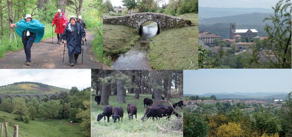 Le séjour commence par la visite des vieux quartiers du Puy en Velay et de la cathédrale dont l’entrée s’effectue par un escalier qui débouche au milieu de la nef centrale. En guise d’entraînement, nous sommes également montés au pied de la statue Notre Dame qui offre un beau panorama sur la ville et ses alentours. Beaucoup de randonneurs, mais la majorité part sur le chemin de Compostelle.