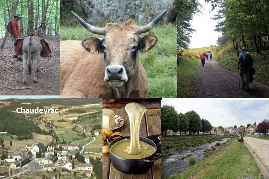 Nous quittons la Haute Loire et le Velay pour entrer en Lozère. Nous croisons un marcheur qui fait le chemin avec un âne qui s’appelle «Farinelli». Même s’il marche moins vite et au pas de l’âne plutôt qu’au sien, il semble prendre du plaisir à cette compagnie. Nous quittons provisoirement le GR70 pour dormir à Chaudeyrac. Le repas du soir sera typique de la région avec l’aligot, apparemment mieux apprécié que la lentille.
