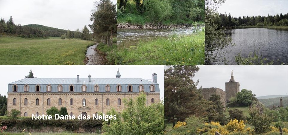 Aujourd’hui, c’est la plus longue étape du parcours, mais nous allons pouvoir la raccourcir car une navette nous transporte jusqu’au Cheylard-l’Évêque où nous retrouvons le GR70. Les paysages changent avec moins de champs cultivés et plus de forêts. A quelques kilomètres de l’arrivée, nous avons deux solutions: soit descendre directement sur La Bastide, soit faire un crochet par le monastère de Notre Dame des Neiges. Nous décidons de passer par l’ancien monastère trappiste qui est occupé par des sœurs depuis deux ans. Au final, ce sera bien la plus longue étape du parcours avec 27 kilomètres et 714 mètres de dénivelé