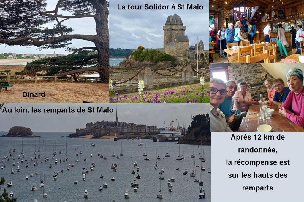 – Le 3 Juillet 2024 : Dinard : départ des 2 groupes vers St Malo, randonnée de 12,2 km, 210 m de dénivelé. Beaucoup d’escaliers en bois assez raides. Après tous ces efforts, nous allons festoyer à la taverne du Corps de Garde. Au menu, galettes et crêpes accompagnées d’une bolée de cidre.