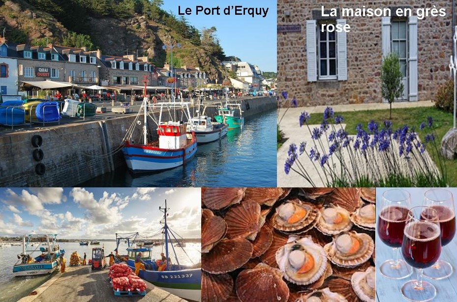 Le bourg d’Erquy, moins connu que le Cap Fréhel, occupe le fond d’une anse de la côte de Penthièvre comprise entre le Cap d’Erquy, site naturel acquis par le Conseil départemental des Côtes-d’Armor, et la pointe de la Houssaye, constituée des vestiges d’une éruption volcanique . C’est dans cette rade d’Erquy que, le 16 mars 1796, un combat naval opposa des navires anglais et français. Hormis les conflits qui ont émaillé pendant des siècles cette contrée, le port d’Erquy, abritant une flottille d’environ 80 chalutiers, est connu comme la « capitale » de la coquille Saint-Jacques, pêchée dans la baie de Saint-Brieuc.