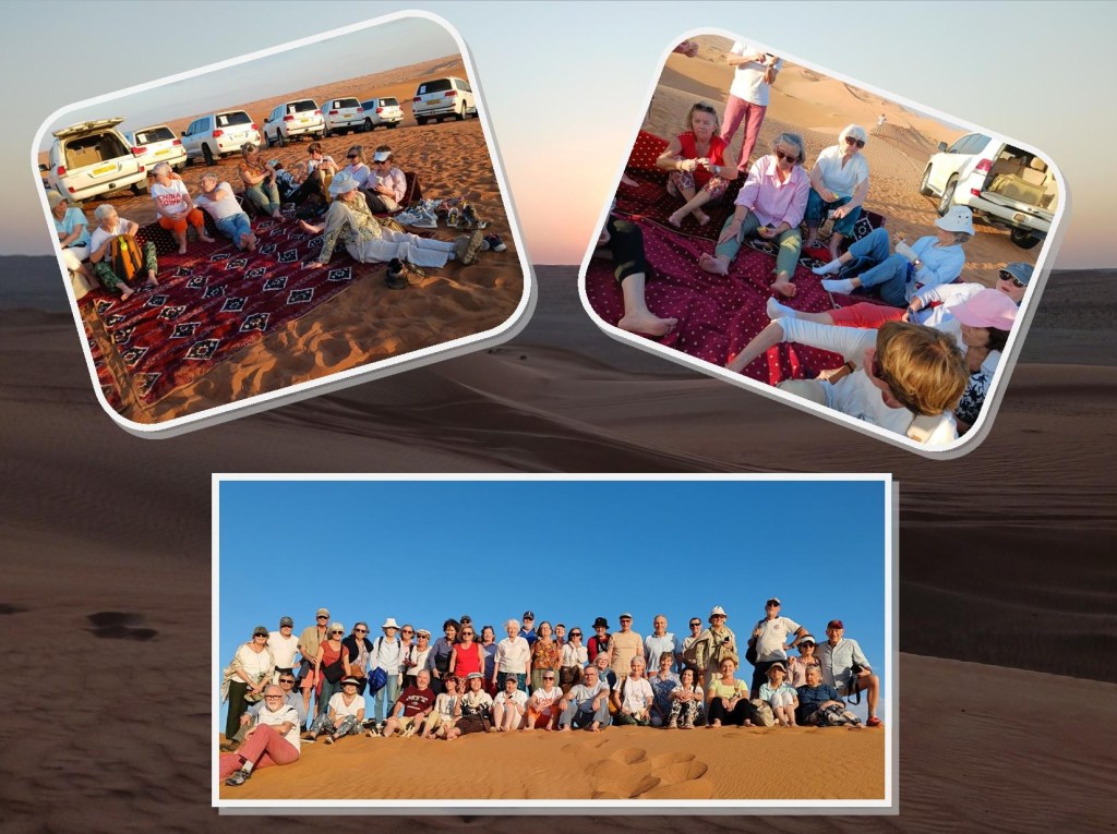 Jeudi 29 janvier: Arrivée au Wadi Bani Khalid. Nous traversons le village et les plantations de dattiers. Partout, l’eau descend de la montagne par un grand système d’irrigation (le falaj) – classé à l’Unesco – permettant de nombreuses cultures entretenues sous les palmiers. Puis nous prenons la route pour le désert du Wahiba Sands. Face à cette mer de sable orange, de puissants 4 x 4 nous transforment en cascadeurs pour atteindre 100 m. Le coucher de soleil est timide et nous arrivons rapidement au campement pour passer la nuit. Quelques uns d’entre nous ont prévu, dès 5 heures du matin, des activités pour célébrer le lever du soleil dans les dunes : les plus romantiques dégusteront un thé bien chaud devant un feu de bois, les plus sportifs déambuleront à dos de dromadaires, les plus rêveurs s’envoleront en montgolfière et ressentiront une certaine plénitude entre le ciel et la terre. Les autres profiteront d’une grasse matinée……