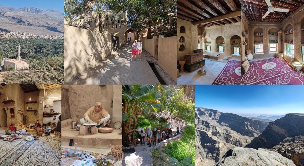 Tous les musées sont installés dans des forts superbement rénovés, rassemblant le passé et les traditions d’Oman. Toutes les maisons des villages traversés sont coquettes, chapeautées par les réservoirs d’eau, et de jardins clos aux hauts murs pour respecter l’intimité des femmes.
